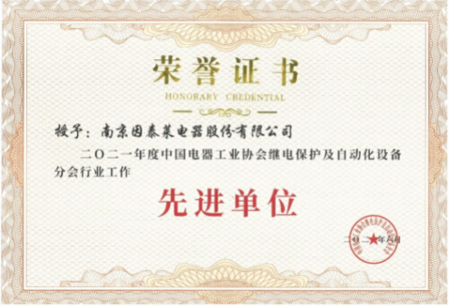 南京因泰萊獲評(píng)中國(guó)電器工業(yè)協(xié)會(huì)繼電保護(hù)及自動(dòng)化設(shè)備分會(huì)工作先進(jìn)單位