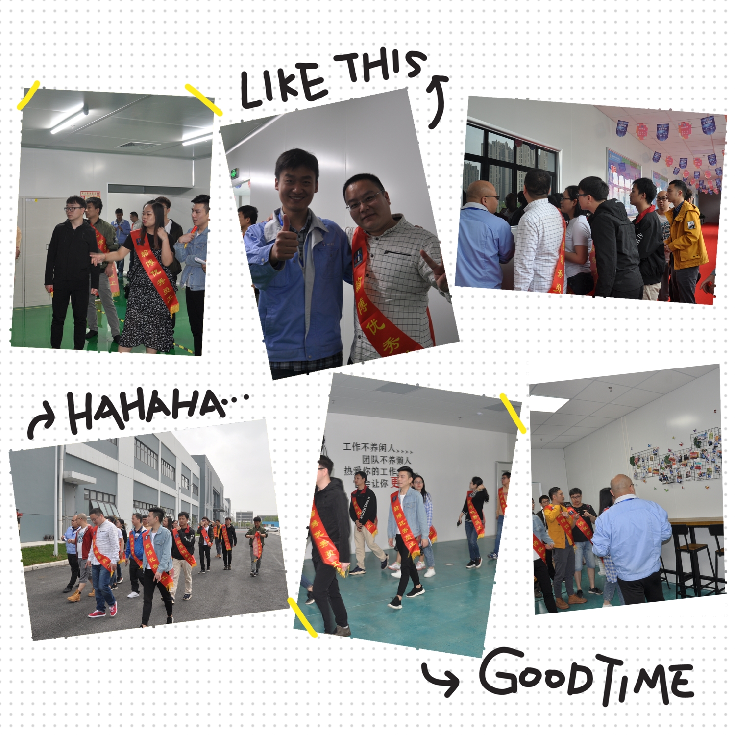 24日上午八時三十分,重慶優(yōu)秀同仁抵達(dá)翰博廠區(qū),在工會主席許永強(qiáng)先生,導(dǎo)光板事業(yè)部負(fù)責(zé)人趙丹女生,常唐國先生,材料部負(fù)責(zé)人曹園女士,人事行政管理部部長李雅茂先生的陪同下對翰博廠區(qū)以及新疆學(xué)生宿舍進(jìn)行參觀了解。我們的新疆學(xué)生宿舍不僅內(nèi)務(wù)整潔,室內(nèi)文化氛圍也非常濃厚,充分結(jié)合工作與生活,將廢棄用品二次利用,積極創(chuàng)建文明宿舍。